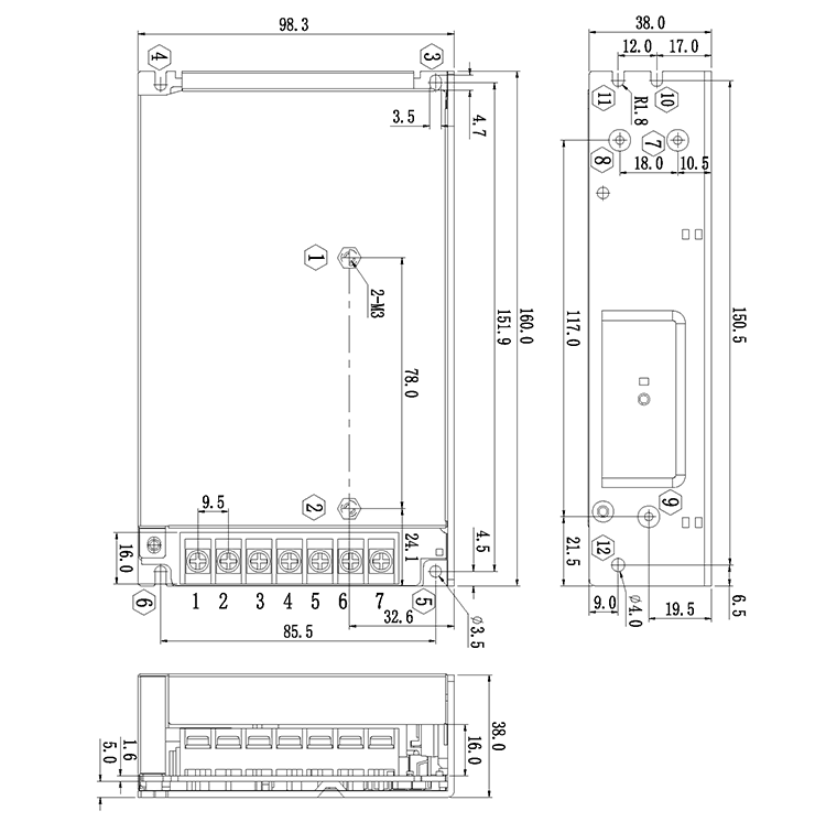 華成系列機械手控制系統(tǒng)開關(guān)電源包含單路/雙路,50W/100W兩款開關(guān)電源;制動電阻有120W/200W/300W選擇,各功率段產(chǎn)品尺寸及安裝方式如下: