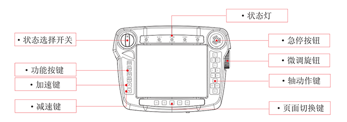 注塑機(jī)機(jī)械手按鍵講解,產(chǎn)品為華成系列注塑機(jī)械手控制系統(tǒng),下圖為注塑驅(qū)控一體EC-S3/S5產(chǎn)品。目前華成注塑機(jī)械手手控器外觀包括有黑色(標(biāo)準(zhǔn)系統(tǒng))、灰色、橙色三款,但功能不受影響,示教器基本功能如下: