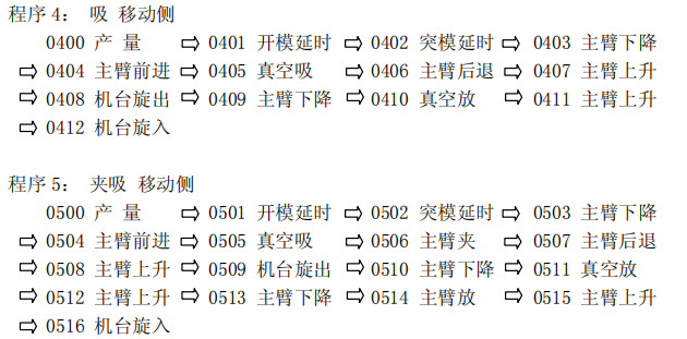 斜臂機械手控制系統為華成系列機械手控制系統,系統設置的標準動作程序,含單臂動作、雙臂動作(雙臂、主臂、副臂)。選擇操作如下: